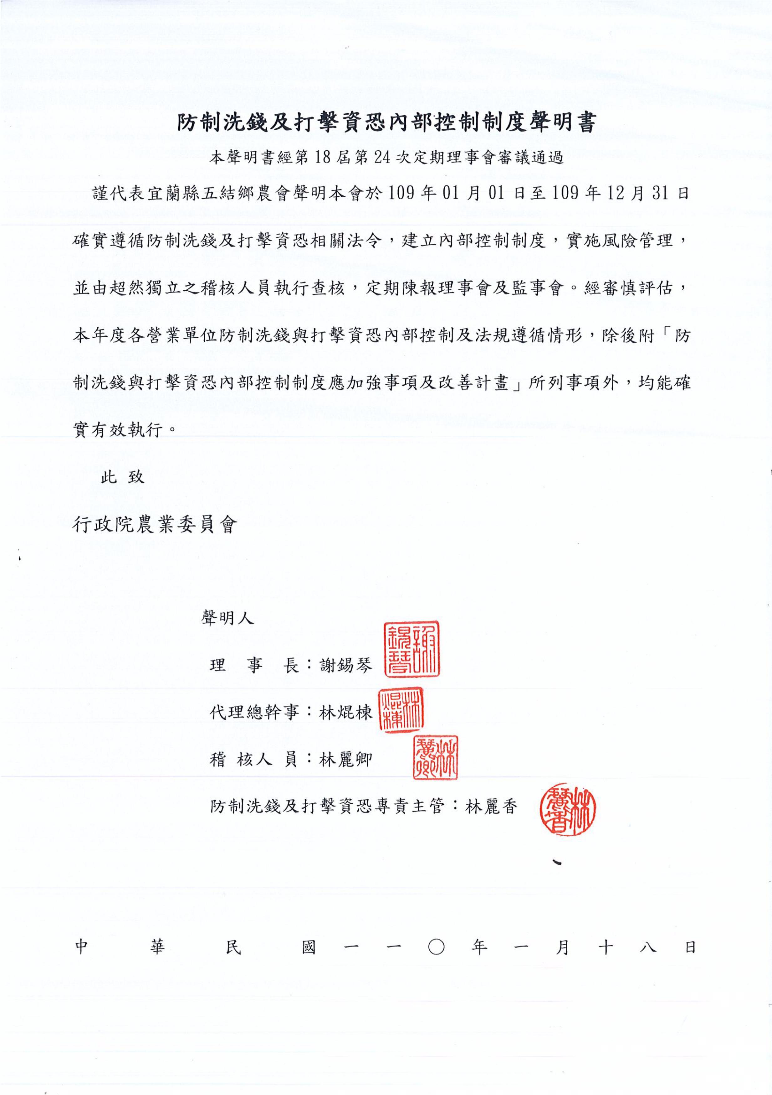 【信用部】防制洗錢及打擊資恐內部控制制度聲明書